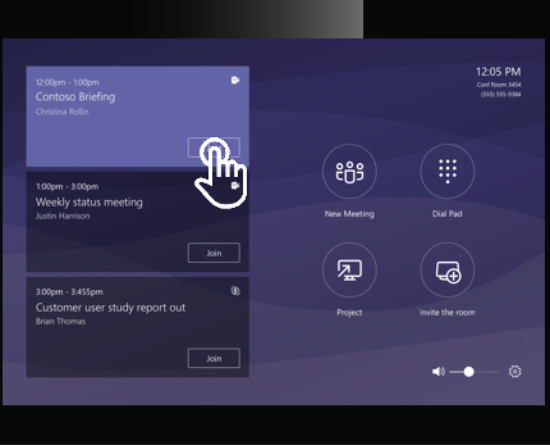 Het Teams Room Systeem wordt door diverse fabrikanten geleverd met ieder zijn eigen behuizing voor de touchscreen. De interface op het touchscreen is door Microsoft vastgesteld en is bij alle fabrikanten gelijk. Deze uniformiteit zorgt voor een herkenbaarheid ongeacht de fabrikant van de hardware.