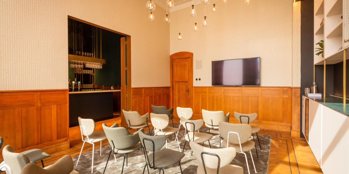 - Presentatiezaal: Uitgerust met comfortabele stoelen en een professionele AV-opstelling, inclusief groot formaat monitoren en een helder Bose audiosysteem. Perfect voor presentaties, trainingen en evenementen waar een heldere audiovisuele ervaring centraal staat.