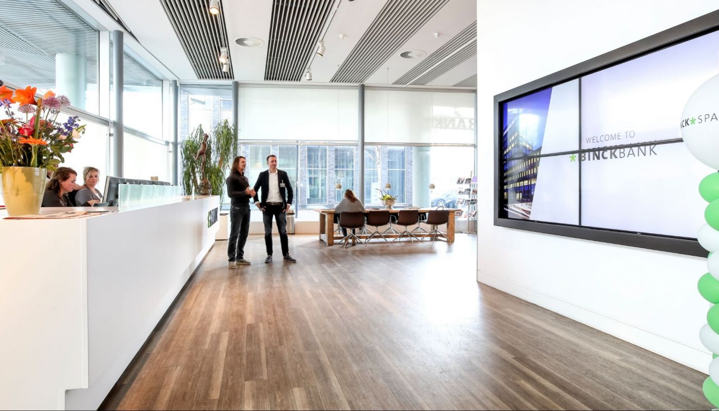 AVisie heeft wederom een efficiënte corporate digital signage oplossing geïnstalleerd. Ditmaal bij de BinckBank N.V., die sinds 2010 al zeer actief en succesvol digital signage toepast om bezoekers en werknemers te informeren.