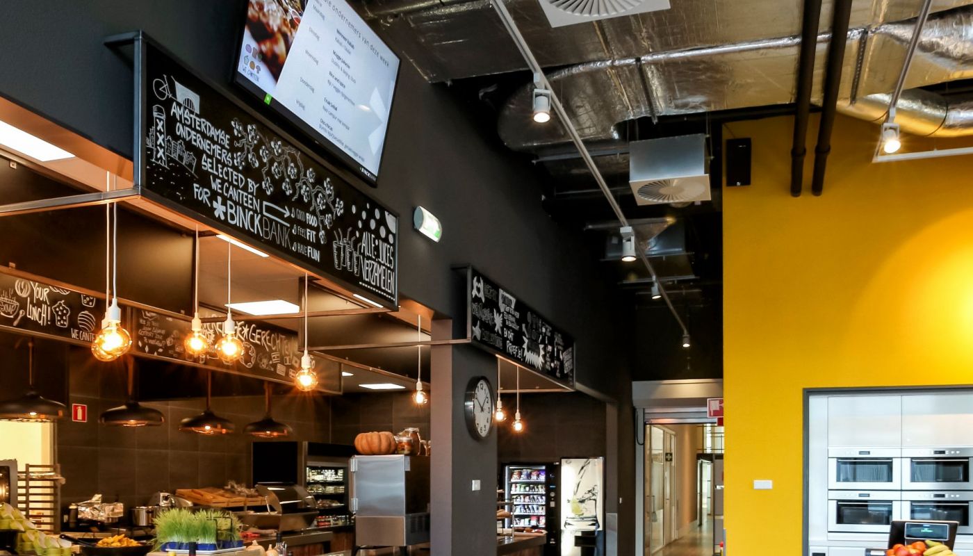 Wat betreft externe communicatie informeren de videowall en de schermen in de entree bezoekers over BinckBank. Om intern te kunnen communiceren met werknemers zijn alle pantry’s voorzien van digital signage displays. Daarnaast worden nieuws updates getoond bij de lift en tot slot het BinckBank restaurant. Dit scherm toont o.a. interne informatie, maar zeker niet onbelangrijk het weekmenu!