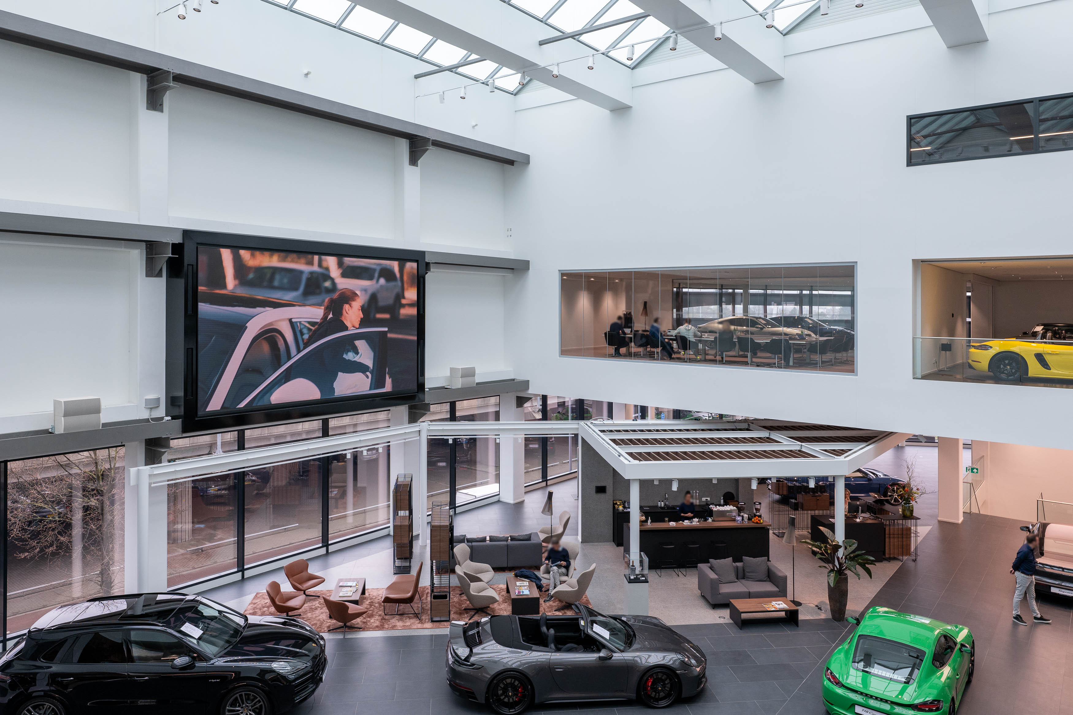 AVisie heeft onlangs het prachtige nieuwe CarPort Rotterdam voorzien van een volledige audiovisuele inrichting. Deze fantastische showroom, die onderdak biedt aan Porsche, Bentley én Lamborghini, heeft nu de mogelijkheid om in 4K showcases of presentaties te hosten op de maar liefst 608cm lange LED wall (342cm hoog).
