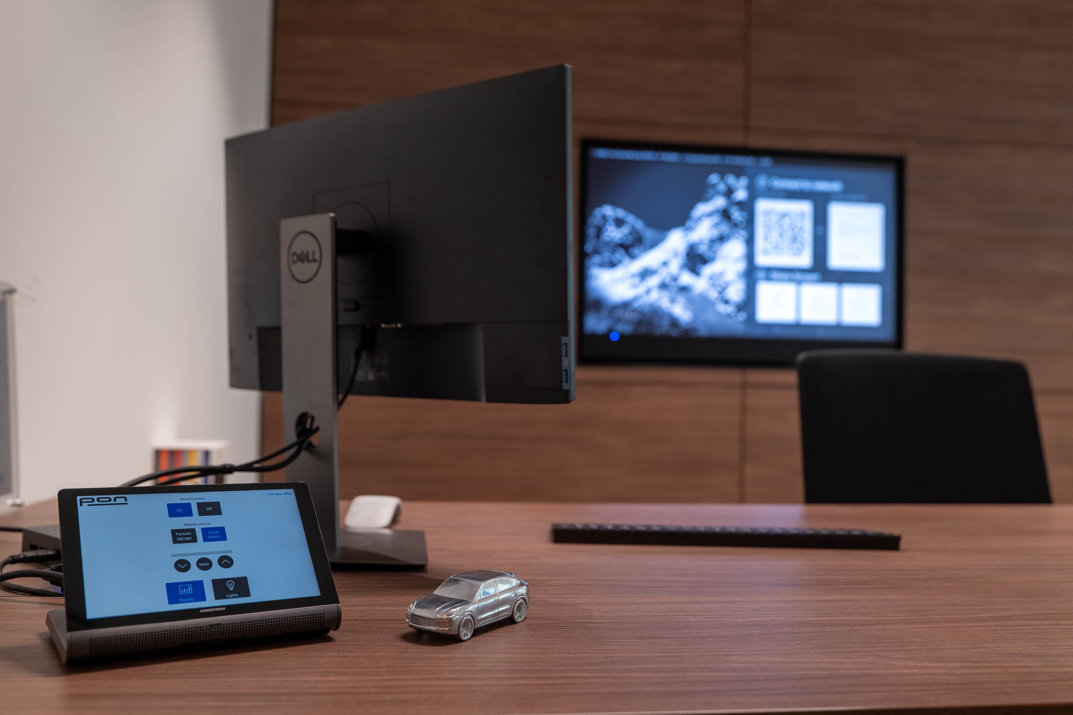 Verder zijn er in de werkplaats monitoren geplaatst om de werkzaamheden van de monteurs te vergemakkelijken. De shop-in-shops en spreekkamers zijn tevens voorzien van displays en door de gehele showroom zijn bedieningspanelen gepositioneerd. De kers op de taart zijn de configuratie ruimten waar de samengestelde auto directe op de aanwezige monitoren kan worden weergeven.