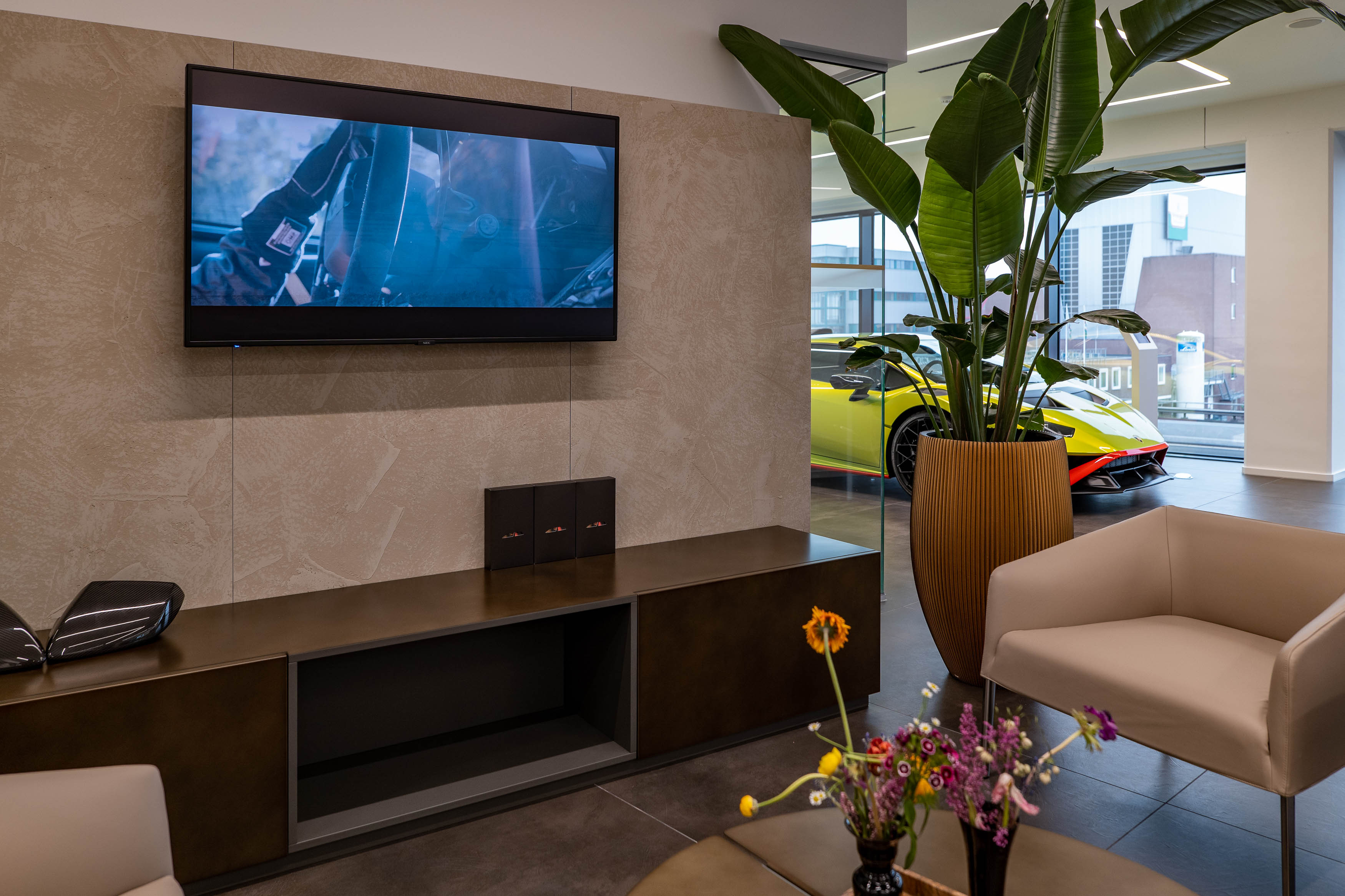 Daarnaast is de showroom van Lamborghini Rotterdam voorzien van een NEC videowall om de bezoekende klanten een fantastische ervaring te geven.