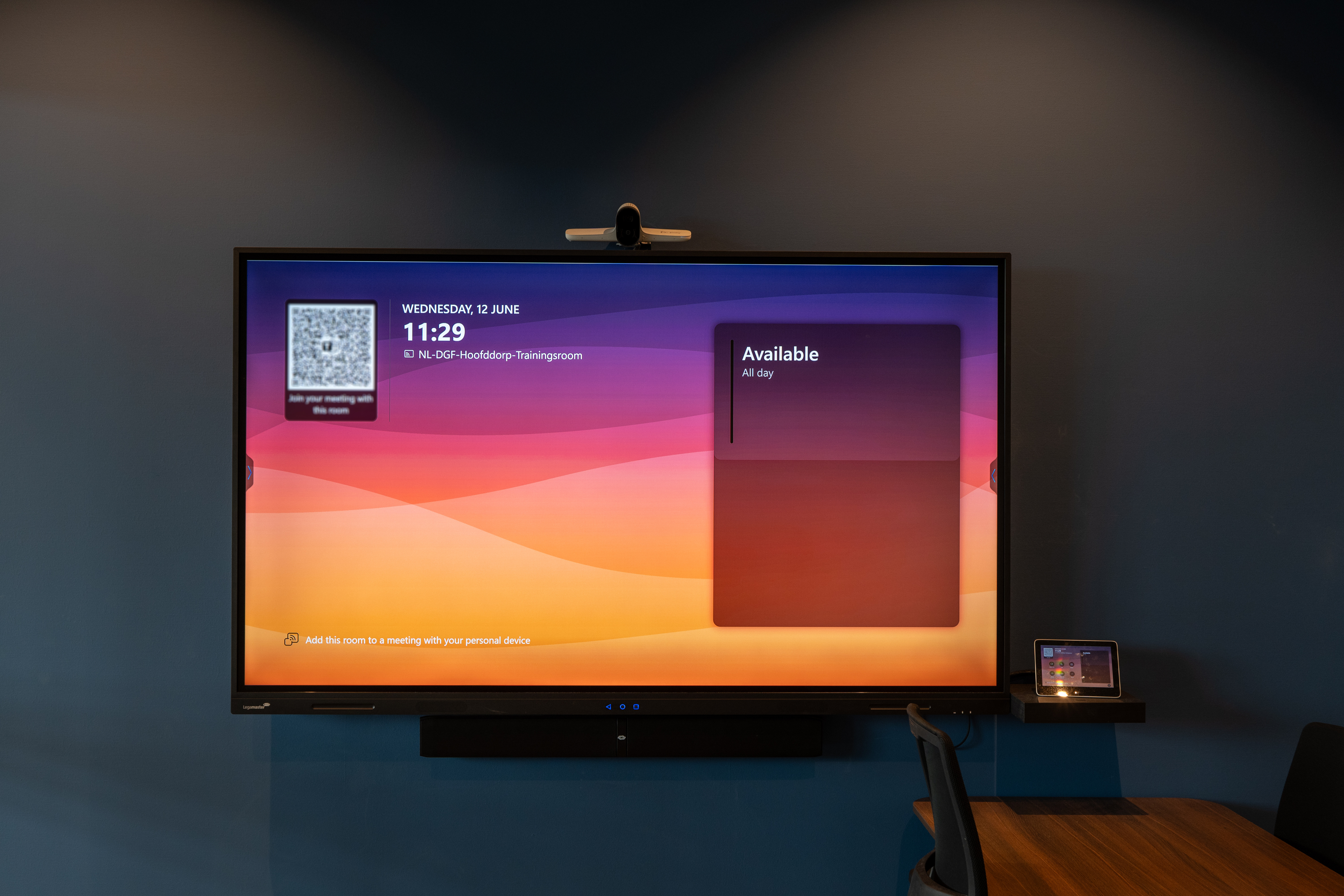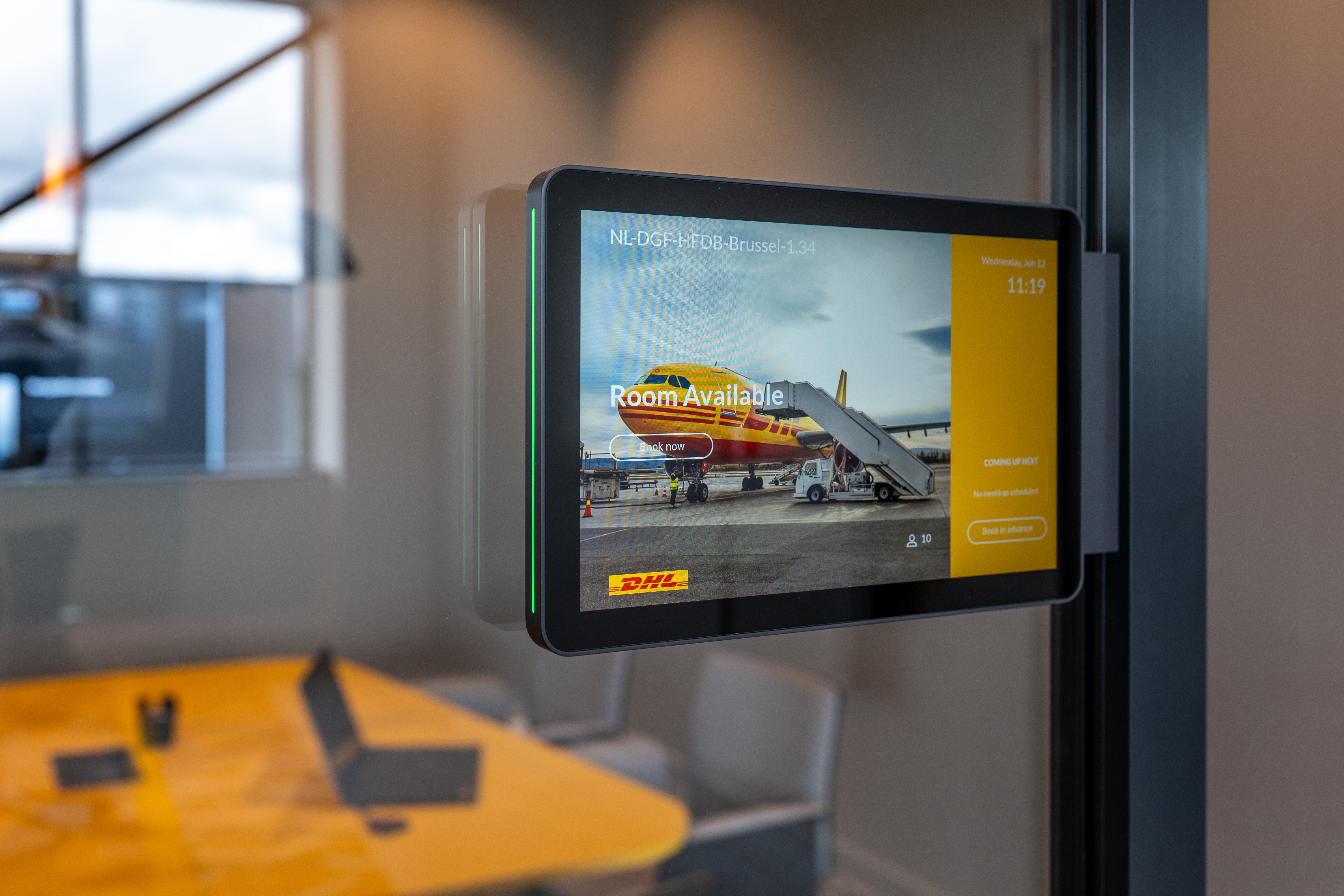 Bijna alle vergaderruimtes zijn nu uitgerust met Logitech Roombooking panelen, gepersonaliseerd met DHL-software. Dit maakt het eenvoudig om boekingen in te zien, de beschikbaarheid te controleren en snel ruimtes te reserveren.