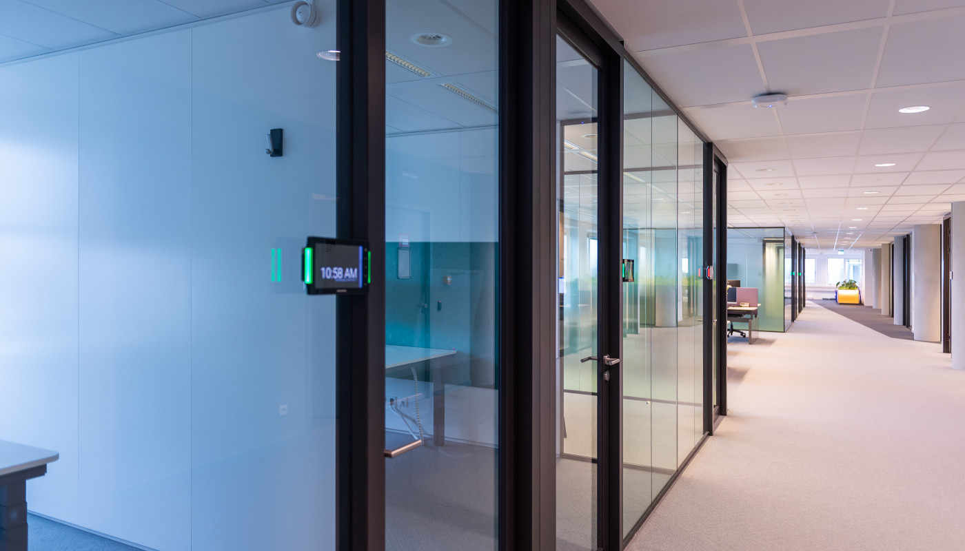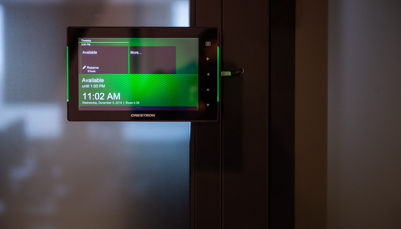reserveringssysteem zodat men op elk moment van de dag kan kijken welke vergaderruimte er vrij is en deze vooruit kan boeken. De interactieve panelen bij de entree van elke vergaderruimte kleurt rood of groen aangaande de beschikbaarheid van de desbetreffende ruimte.