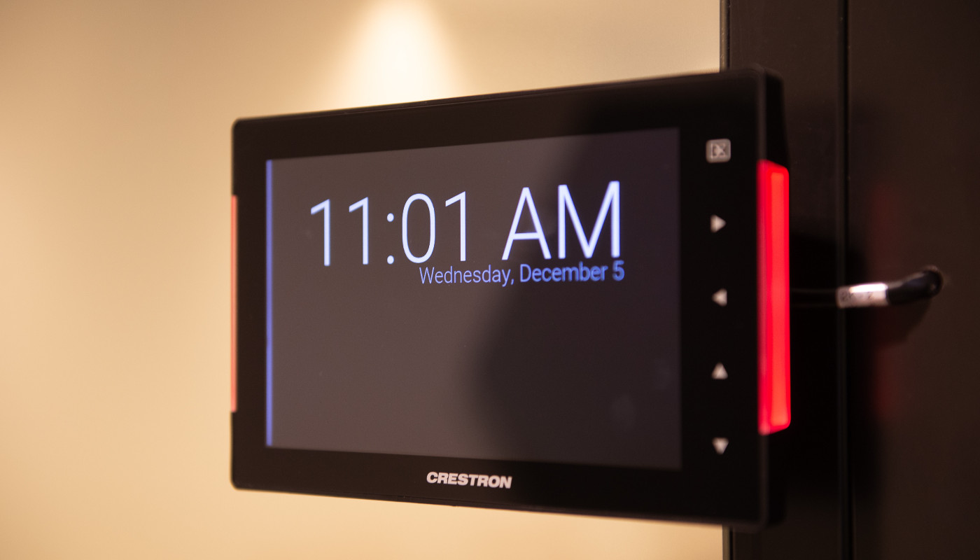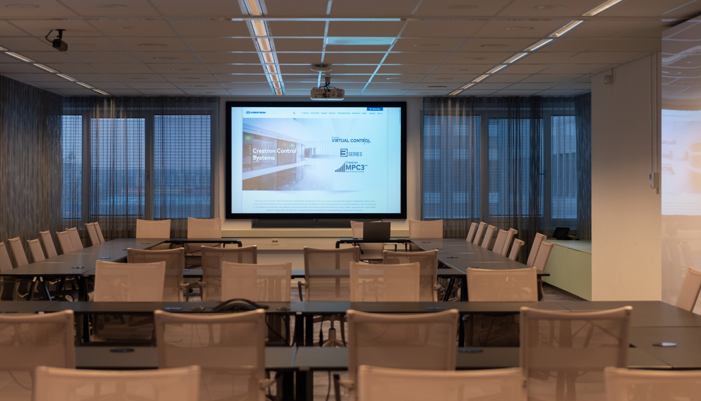 besturingssysteem van Crestron. De 7 inch touch panel houdt alle functionaliteiten overzichtelijk, waarbij de belangrijkste functies achter een pincode verborgen zitten.