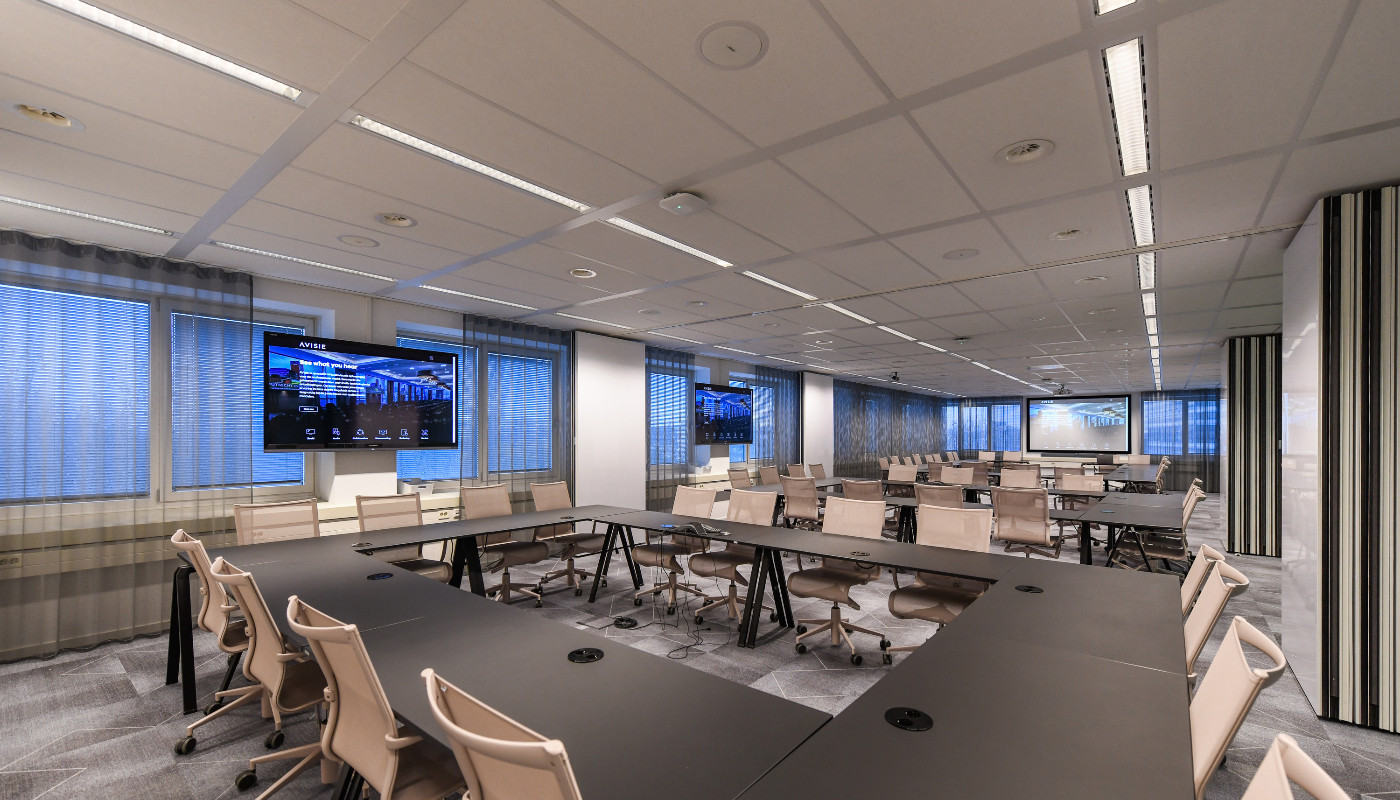 Omdat de wens was dat men bij grote mededelingen en vergaderingen ook de gezamenlijke kantoorruimte kon worden ingezet, is er een Panasonic camera geplaatst die gericht is op de spreker. Hierdoor kan men een zogeheten “town hall” meeting houden die zich tot buiten de vergaderruimten uitstrekt. Een tweetal 65 inch 4K Philips monitoren zorgen voor een perfecte weergave van zowel het camerabeeld als de presentatie. Buiten deze vergaderingen om wordt er optimaal gebruik gemaakt van de monitoren door ze in te zetten voor digital signage.