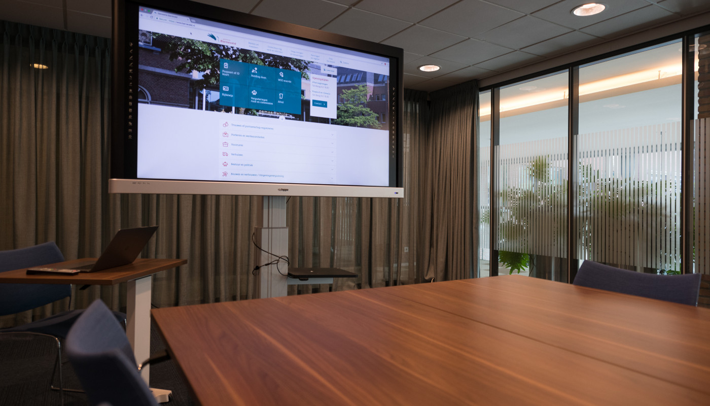 Daarnaast is het gemeentehuis ook voorzien van monitoren ten behoeve van digital signage. Deze vind je terug bij de receptie en worden in de hal gebruikt ter ondersteuning van het wachtrijsysteem.