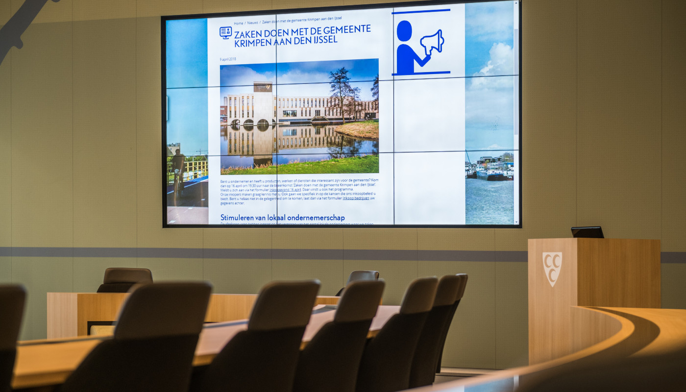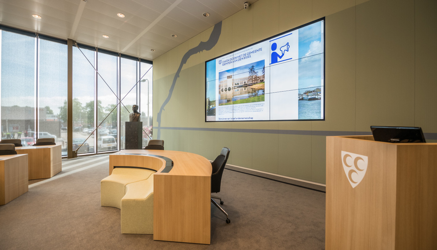 Naast de raadzaal hebben wij ook de spreekkamers en vergaderruimten van het gemeentehuis mogen voorzien van 55 inch