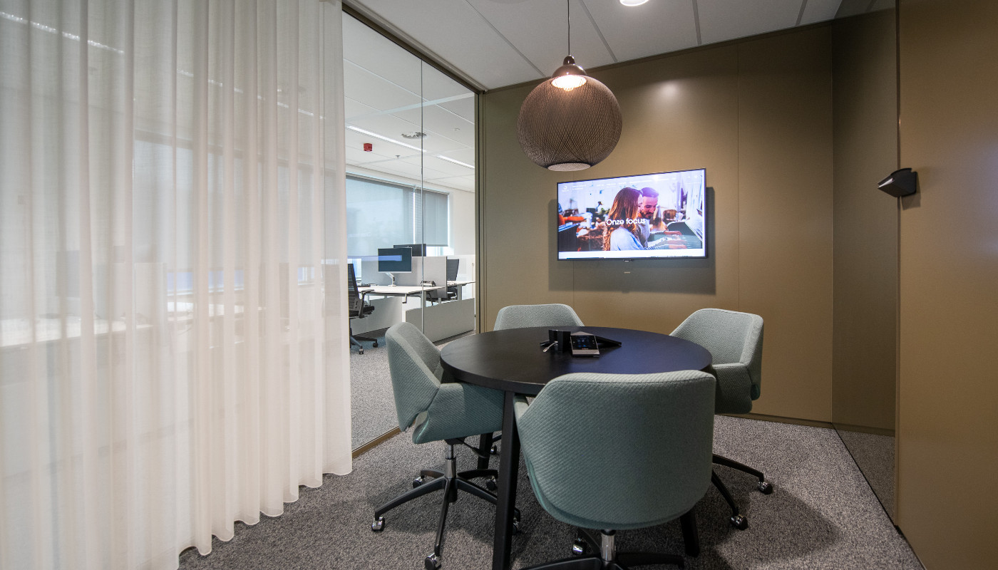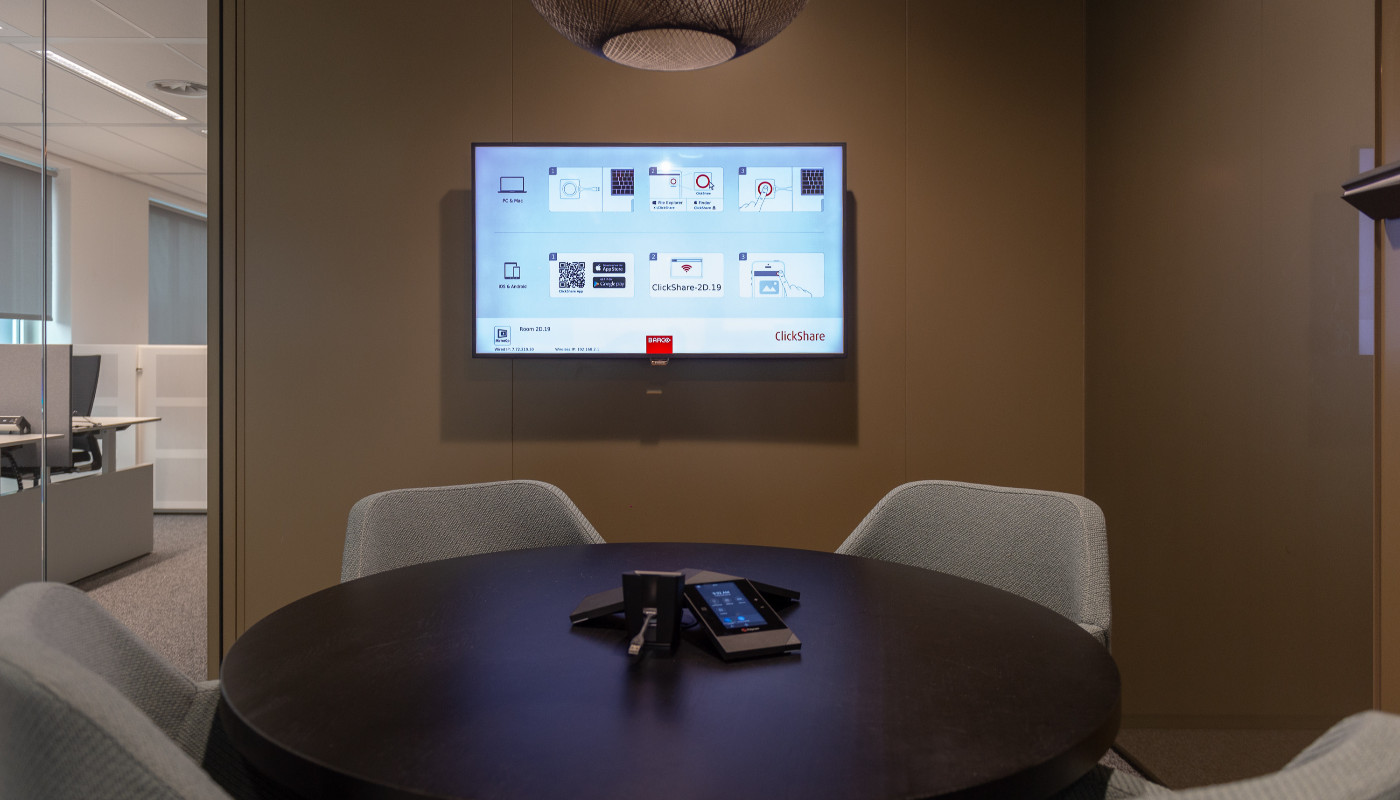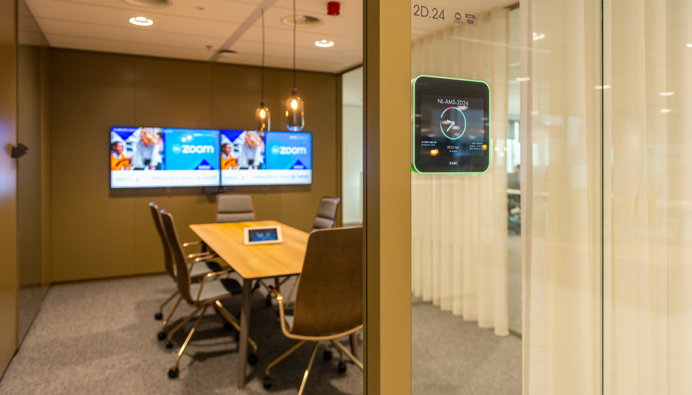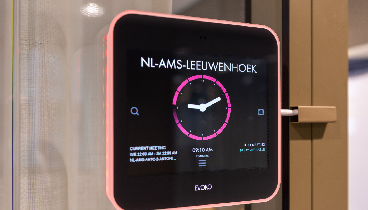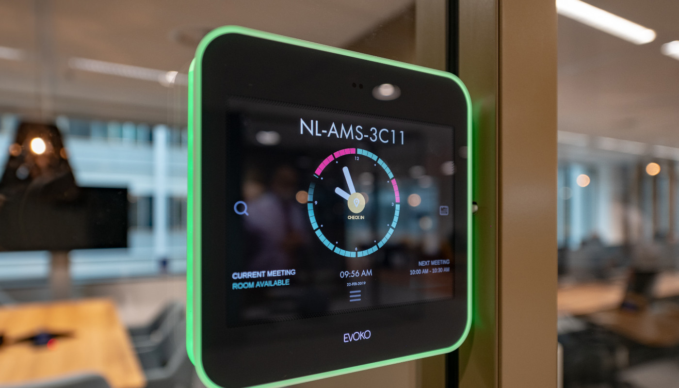 Alle presentatieruimten zijn voorzien van een roombooking systeem van Evoko. Hiervoor is er bij de ingang van alle ruimten voorzien in een display die de boekingen van die dag weergeven en eventueel de mogelijkheid biedt om ad-hoc een boeking te maken. Dit systeem is softwarematig gekoppeld aan de vertrouwde Exchange omgeving van de klant.