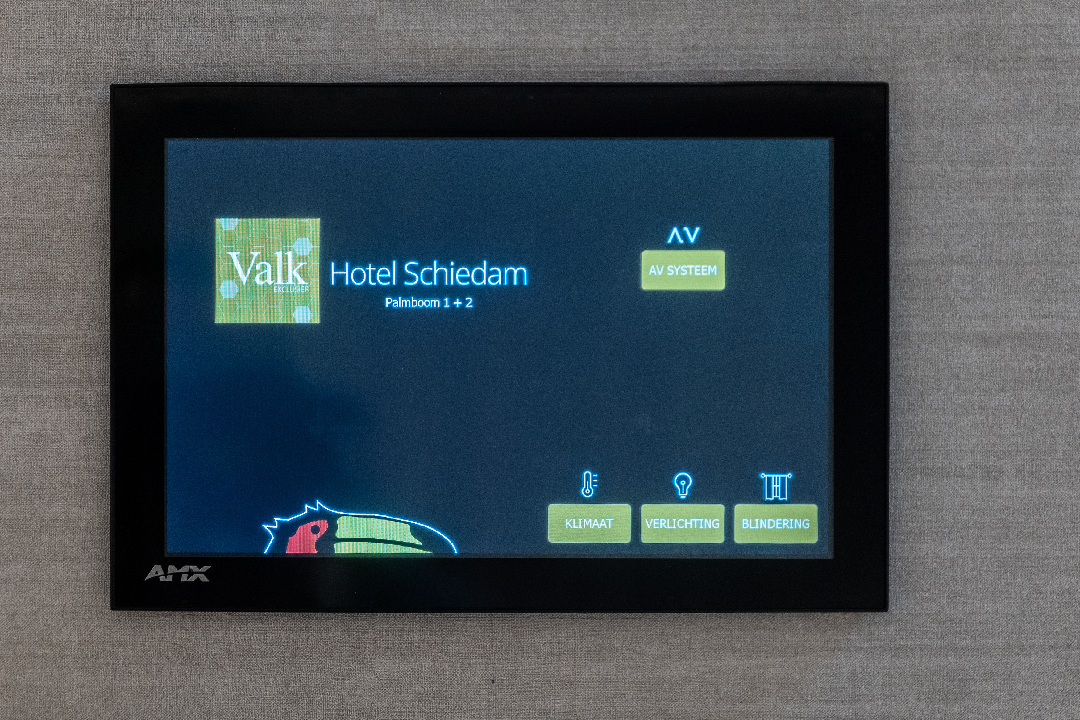 Vanzelfsprekend is de complete audiovisuele installatie bedieningsvriendelijk gemaakt door middel van een zeer uitgebreid AMX besturingssysteem. Middels dit systeem wordt in iedere ruimte zowel de audiovisuele apparatuur bediend als de verduistering, verlichting en de temperatuur.