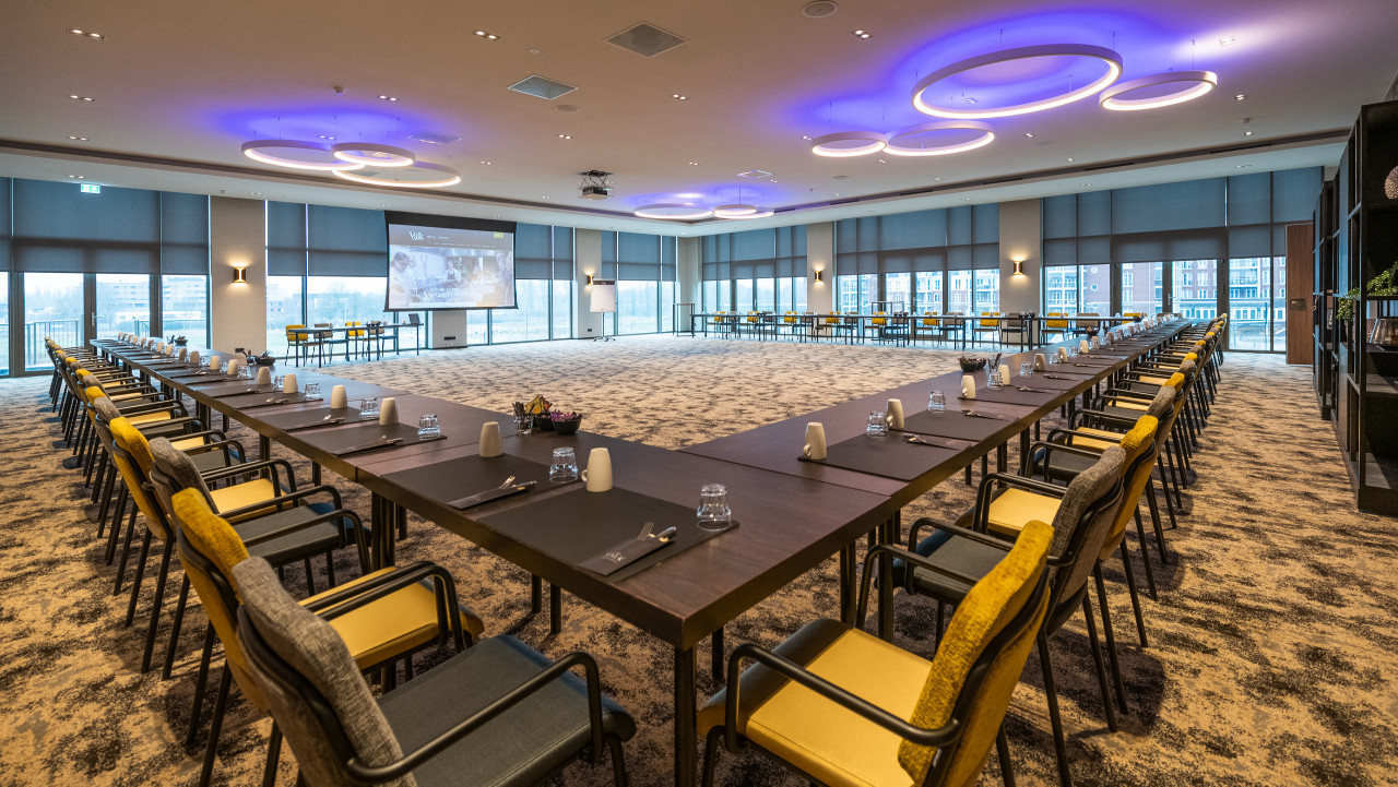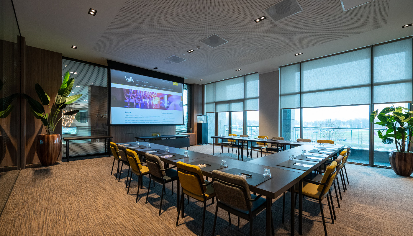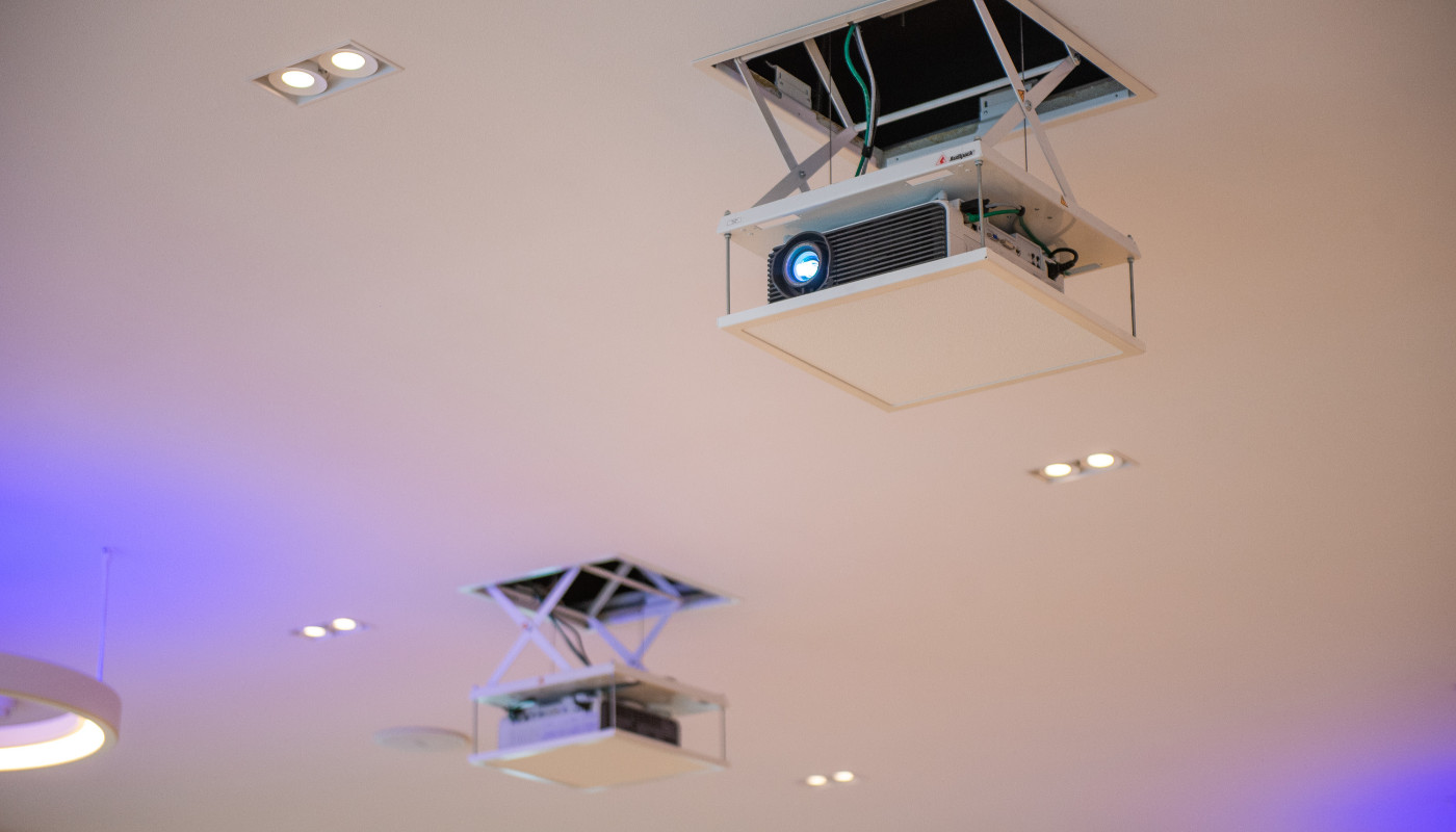 De grootste zalen in het vergadercomplex zijn uitgerust met een hoogwaardig projectiesysteem, waarbij zowel de projector als het projectiescherm volledig in het plafond zijn geïntegreerd. Al deze grote zalen kunnen aan elkaar gekoppeld worden door het openen van de scheidingswanden waardoor er één grote zaal ontstaat. Vanzelfsprekend wordt de audiovisuele configuratie hier automatisch op aangepast. Ook deze zalen zijn uitgerust met een AMX besturingssysteem voor het gewenste bedieningsgemak. De verlichting, verduistering en zelfs de temperatuur wordt eveneens geregeld middels dit systeem.