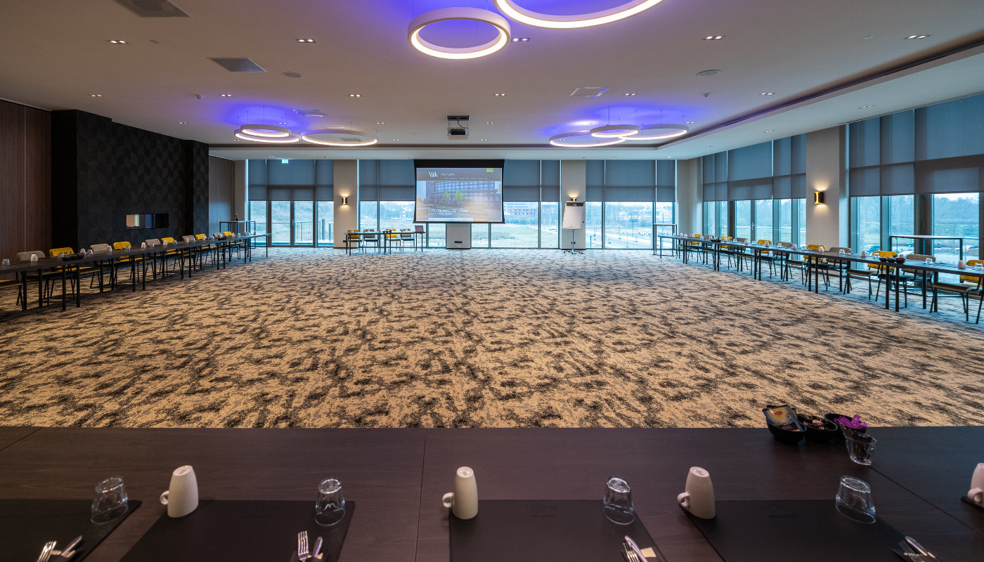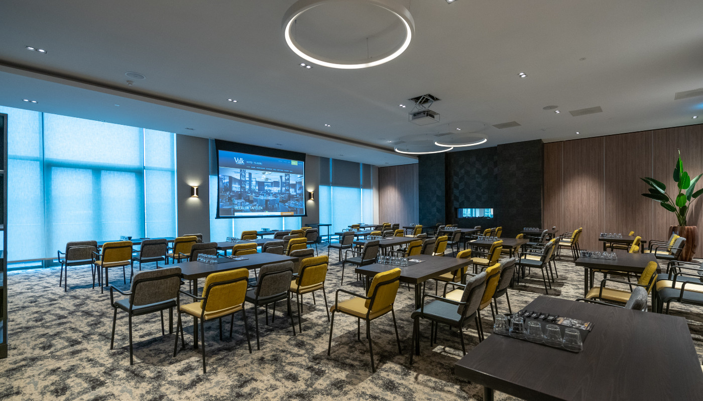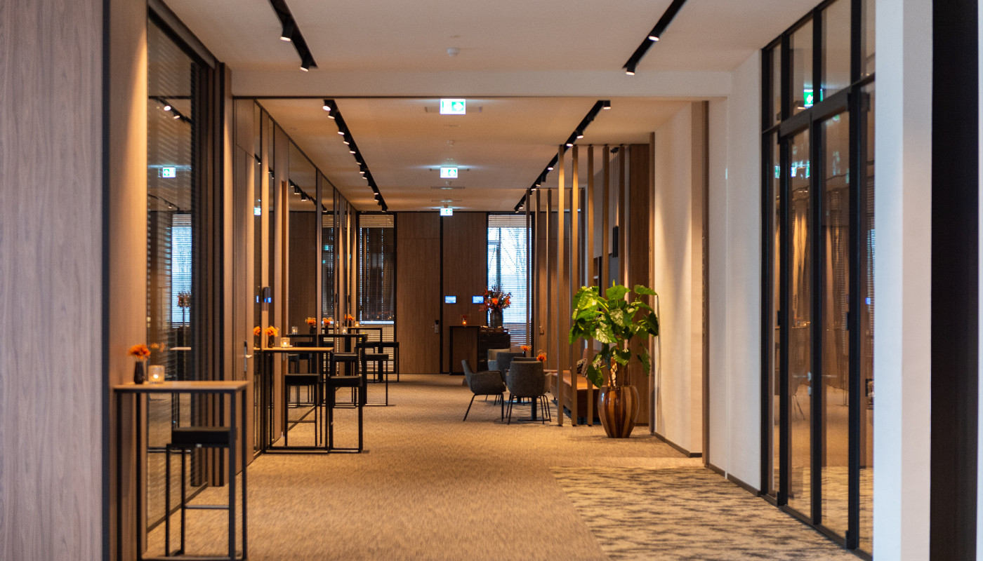 De grootste zalen in het vergadercomplex zijn uitgerust met een hoogwaardig projectiesysteem, waarbij zowel de projector als het projectiescherm volledig in het plafond zijn geïntegreerd. Al deze grote zalen kunnen aan elkaar gekoppeld worden door het openen van de scheidingswanden waardoor er één grote zaal ontstaat. Vanzelfsprekend wordt de audiovisuele configuratie hier automatisch op aangepast. Ook deze zalen zijn uitgerust met een AMX besturingssysteem voor het gewenste bedieningsgemak. De verlichting, verduistering en zelfs de temperatuur wordt eveneens geregeld middels dit systeem.