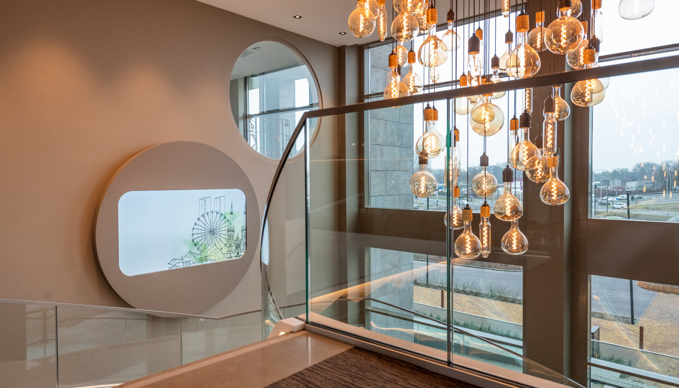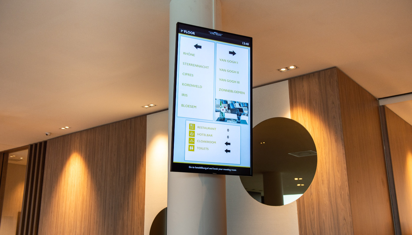 narrowcasting monitoren. Deze monitoren doen dienst als bewegwijzering of als zogeheten "deurkaart". Deze