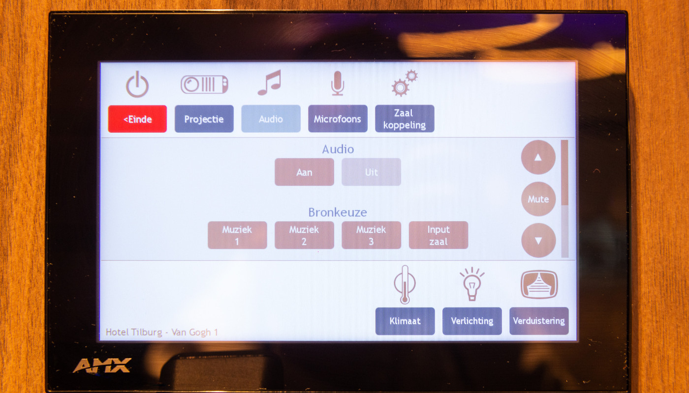Bediening van de achtergrond muziek in de centrale ruimtes zoals het restaurant, de lounge en de bar geschiedt middels een in de wand geïntegreerde touchpanel. Op deze wijze is de toch wel complexe apparatuur voor iedere medewerker goed toegankelijk.