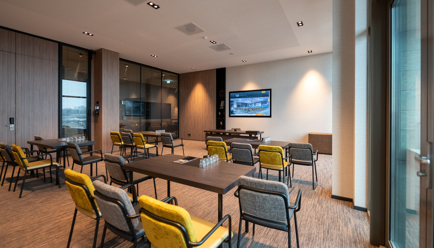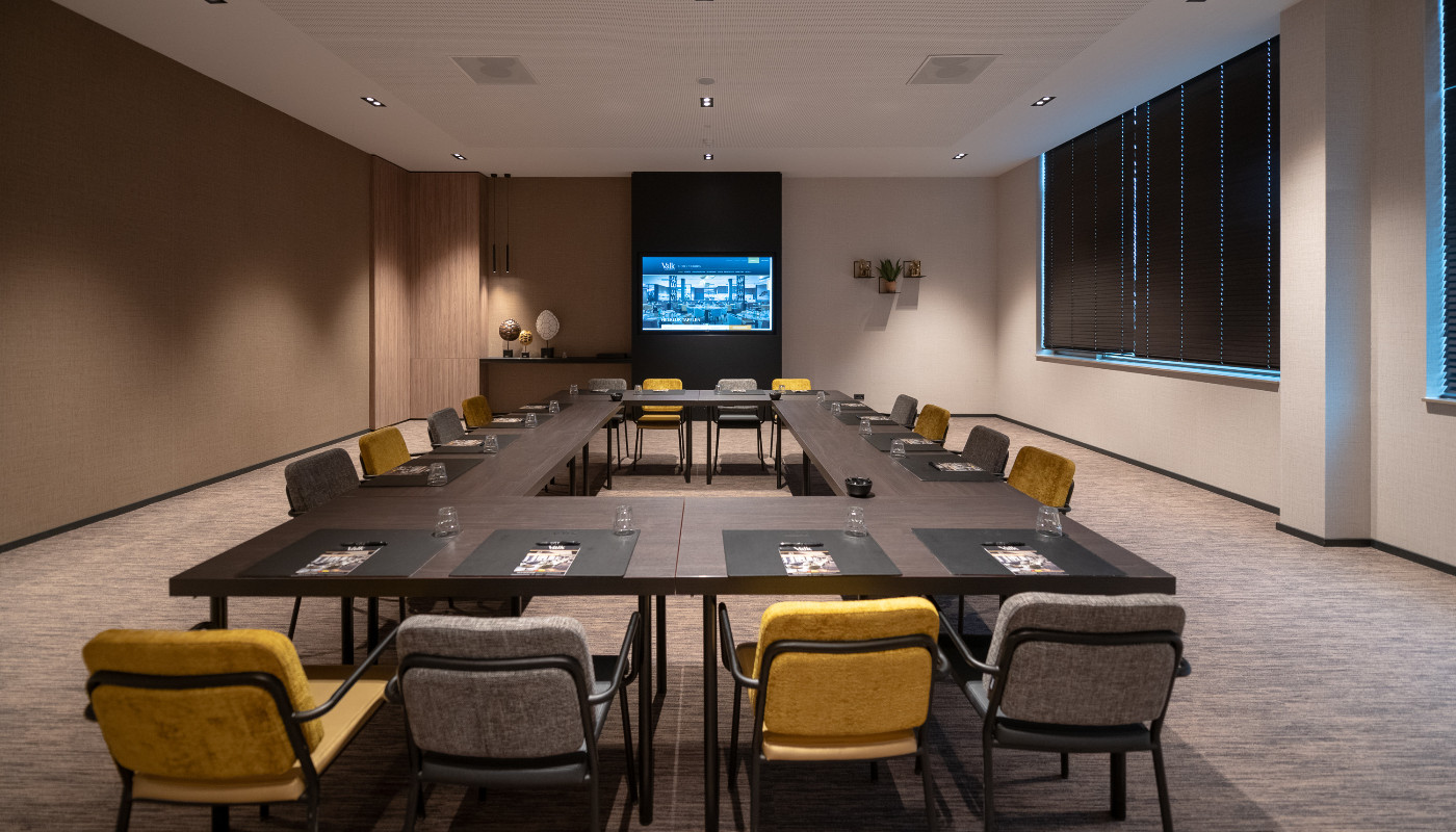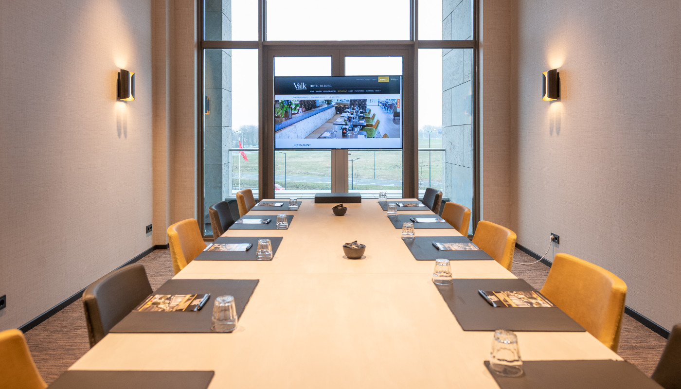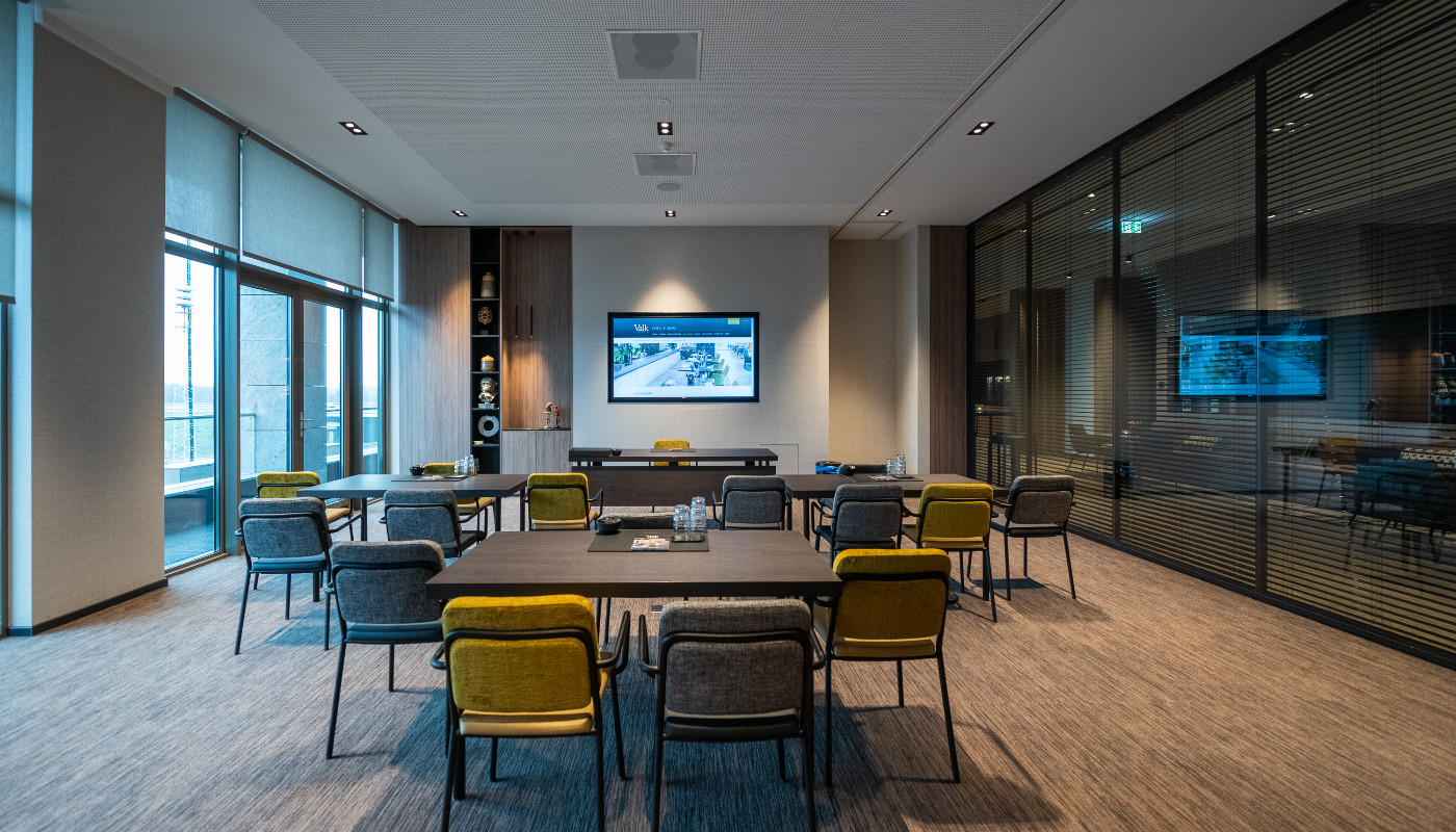 De boardrooms zijn voorzien van een 84inch monitor, waarbij de aansluiting voor een laptop is weggewerkt in het tafelblad. Ook in deze zalen is een AMX besturingssysteem geplaatst.