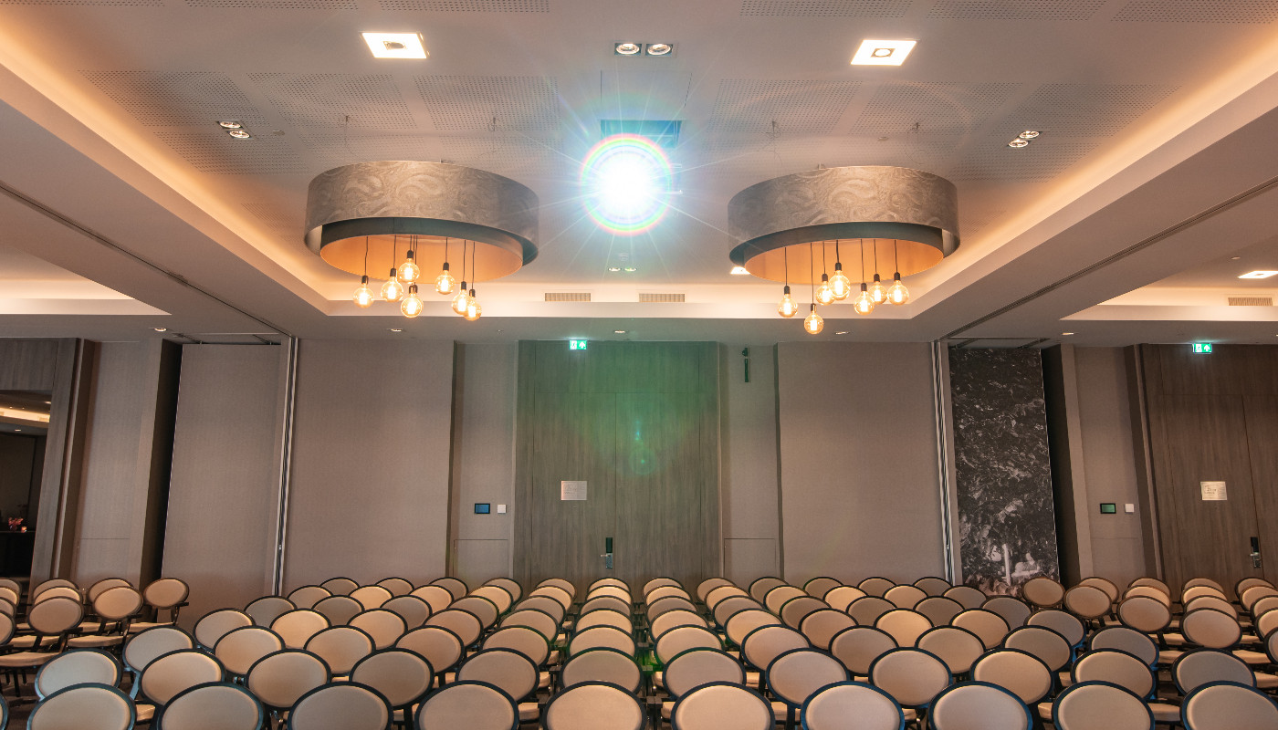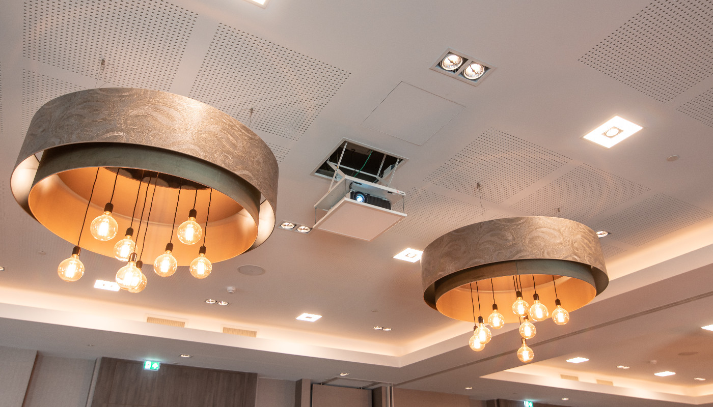 Alle ruimten zijn voorzien van hoogwaardige Canon projectoren die verwerkt zijn in elektrische plafondlift constructies. Hierdoor zijn de projectoren uit het zicht als deze niet gebruikt worden. Om de hoge kwaliteit projectoren tot hun recht te laten komen, projecteren deze op kwalitatief hoogwaardige projectieschermen van Projecta. Deze ingebouwde elektrische projectieschermen zijn voorzien van geïntegreerd staaldraad om het doek te allen tijde strak te spannen om zo een optimaal projectiebeeld te krijgen.